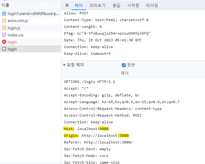 - backend server에서 localhost:3000을 허락하겠다는것으로 cors 미들웨어를 장착해서 사용해준다!