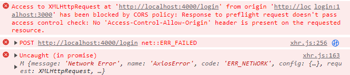 - XMLHttpRequest가 정책을 위반했다고 알려준 에러메세지로 포트를 잘못요청했다는 뜻!!!!