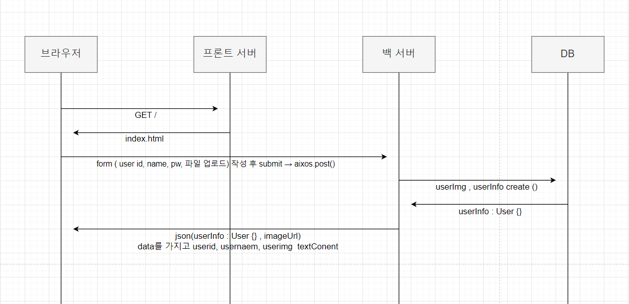 - form에 입력된 값을 formData 에 담아서 백엔드서버에 axios.post() 요청을 보낸다.