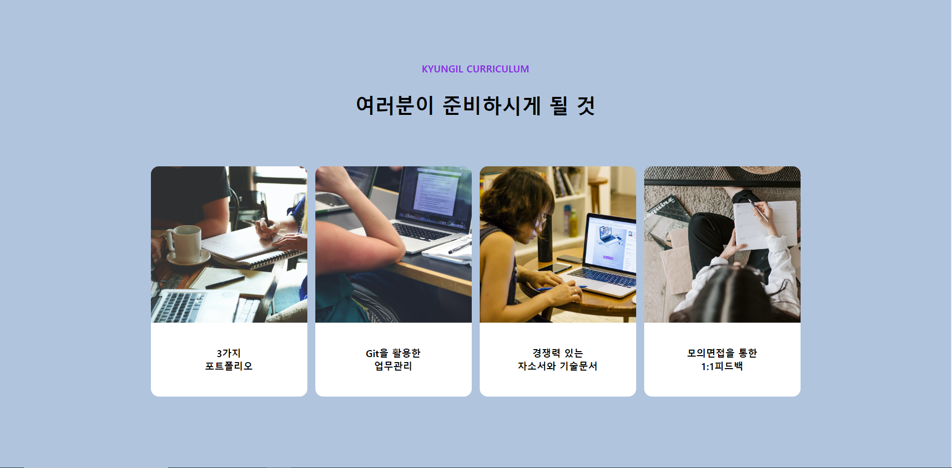 경일게임아카데미 intro페이지 중 curriculum, guide 영역 클론코딩하기