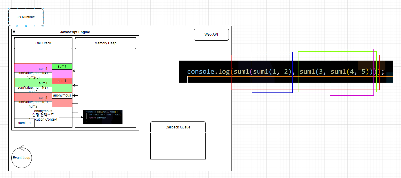 - 함수를 호출했을때 callstack에 쌓인다 → sum