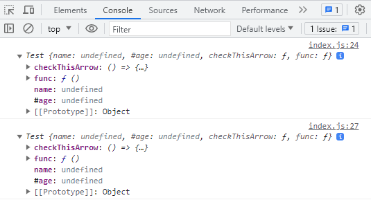 - class Test의 key로 name, #age, static area 를 주었는데 console.log하면 Test의 key에 area는 뜨지않는다.