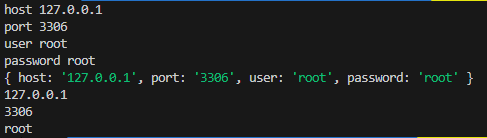 { host: '127.0.0.1', port: '3306', user: 'root', password: 'root' }
